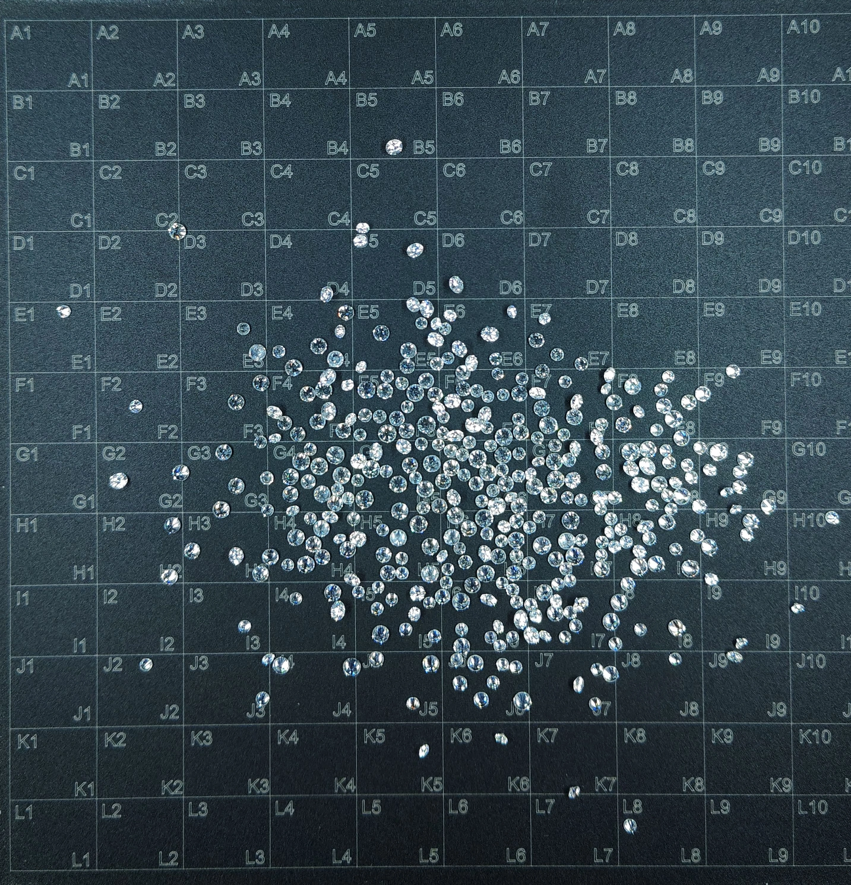 Grid layout mark on tray to easily locate position of diamonds.